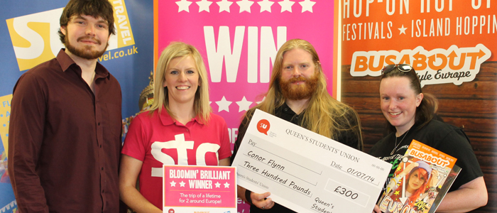 Conor has landed a trip of a lifetime for two around Europe worth an amazing £1,250* courtesy of Busabout, STA Travel Belfast, and Queen’s Students’ Union.